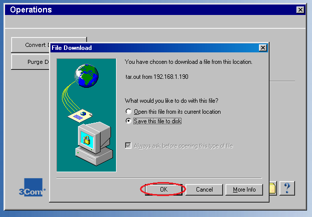 - 3. Click on the BackUp button. The file download window will appear asking what you want to do with the file.