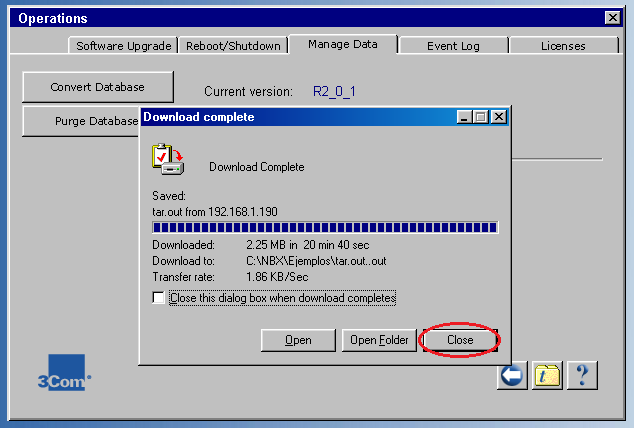 - 6. A dialog box reports that the file download has been completed. Click Close.