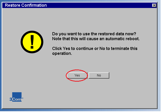- 5. Click Yes. The database restoration process starts. At the end, a window will appear indicating that the system has been restarted.