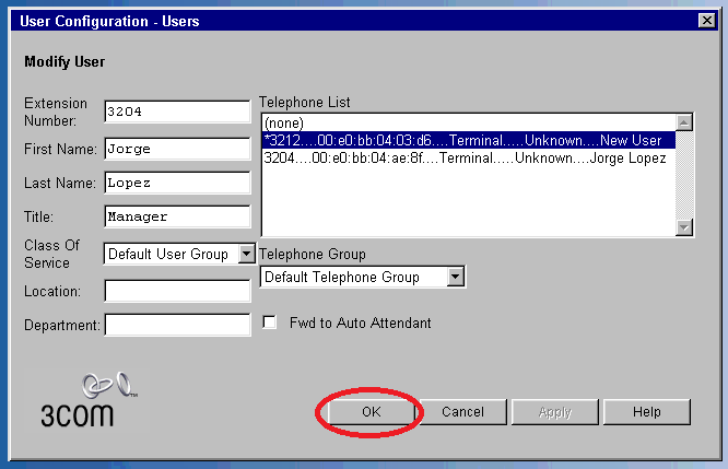 2. In the Telephone List field choose the MAC address of the new telephone and click OK.