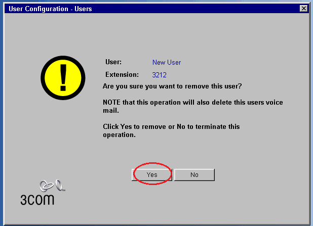 2. Click YES when asked if you want to delete the user.