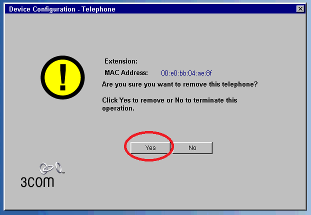 4. Click YES when asked if you want to delete the phone